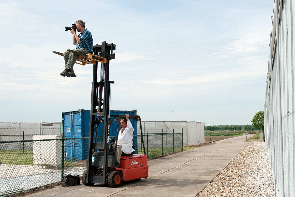 De ene keer werken we in de modder van een groot bouwproject. Dan staan we in een modern kantoor om een ceo te portretteren in de beperkte tijd die daar voor is. De volgende keer fotograferen we, gekleed in stofvrije pakken, in een high tech cleanroom. Een dag later zijn we op de koffie om buurtbewoners te fotograferen in een oude volkswijk. Dit alles afwisselend met beeldbewerking achter onze computers. Kop koffie bij de hand en een lp op de platenspeler. Morgen naar een metaalbedrijf om in de lawaaiige vettige productiehal een serie beelden te maken. Heerlijk!
