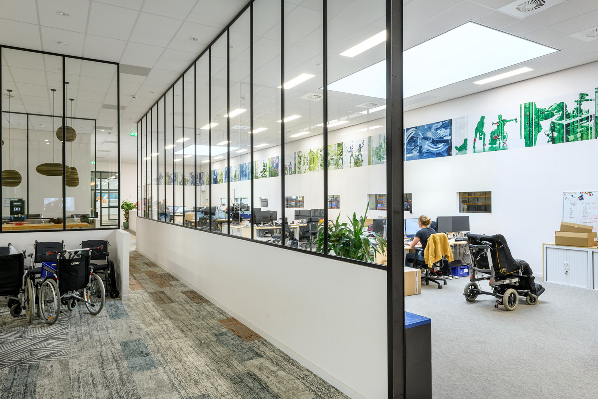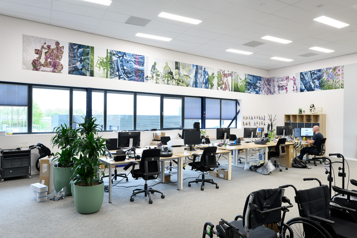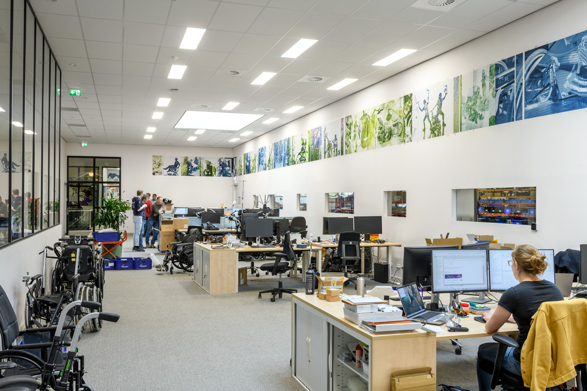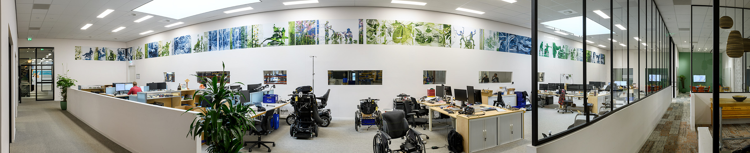 Twee jaar lang mochten we werken aan dit fantastische project! We maakten drie enorme, tot de verbeelding sprekende, beeldstroken voor in de kantoor- en productieruimtes van Life & Mobility in Doetinchem. Het bedrijf heeft als doel om mensen met een mobiliteitsbeperking zoveel mogelijk vrijheid te bieden door het ontwikkelen en fabriceren van innovatieve (elektrische) rolstoelen, scootmobielen en zitsystemen.
